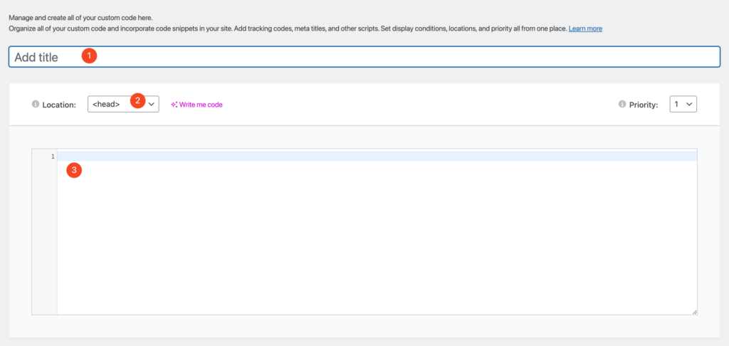 - Indicate the priority to manage the insertion order of the current code in relation to the other custom codes.